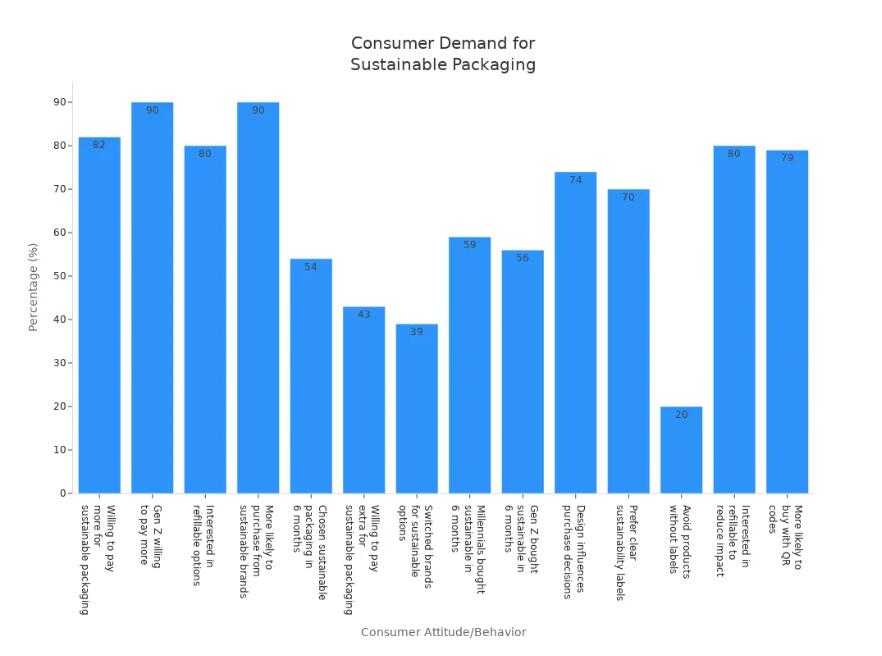 Shoppers want greener packaging now. Most people like packaging that can be recycled or composted. Many will pick a new brand if it is better for the earth. Younger people, like Millennials and Gen Z, are leading this change. They want brands to use smart technology and clear labels. Here is a table with important numbers: