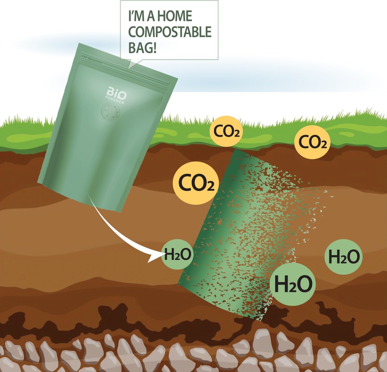 Everything that goes into making compostable packaging should break down and decompose into organic soil if it is labelled home compostable. This includes the ink, and glue, everything.