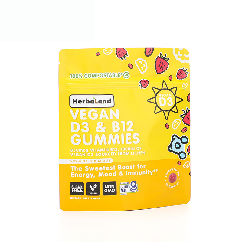 Our 100% compostable stand-up pouches are designed to protect the flavor, texture, and freshness of gummy candies. Made from food-grade, plant-based materials, these eco-friendly candy packaging bags feature an advanced moisture and heat barrier to prevent sticking and melting. With a stable bottom gusset and a resealable zipper, they offer excellent shelf display and long-lasting freshness—ideal for brands seeking sustainable, professional candy packaging.