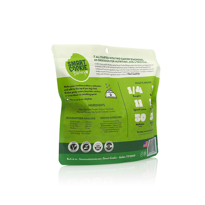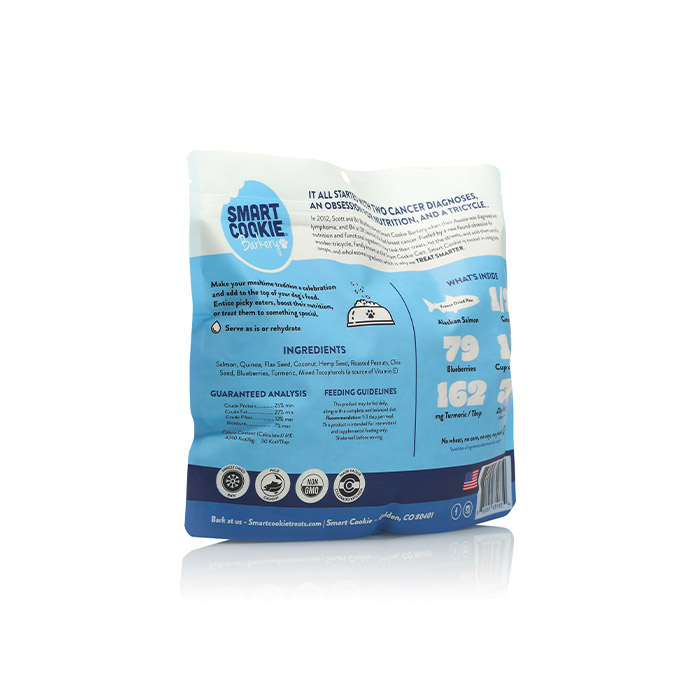 Our stand-up pouches provide excellent shelf visibility and a space-efficient design for pet owners. The reinforced bottom gusset keeps the bag upright, making it easy to scoop or pour toppers while preventing messy spills in the pantry.