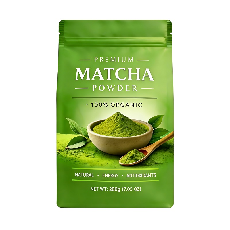 Eco-Friendly Recyclable Flat Bottom Bag for Matcha Powder