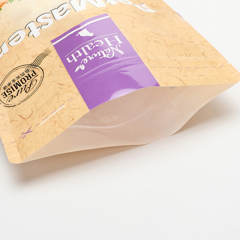 This stand up pouch is specially designed for packaging pet foods and other dried meat products. Made with high-barrier laminated materials, it effectively protects the product from moisture, oxygen, and light to maintain freshness and flavor for a longer shelf life.