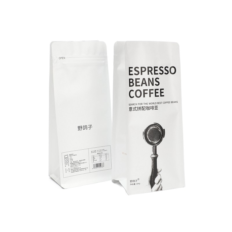 White Kraft Paper Packaging Bag for 454g Coffee Beans